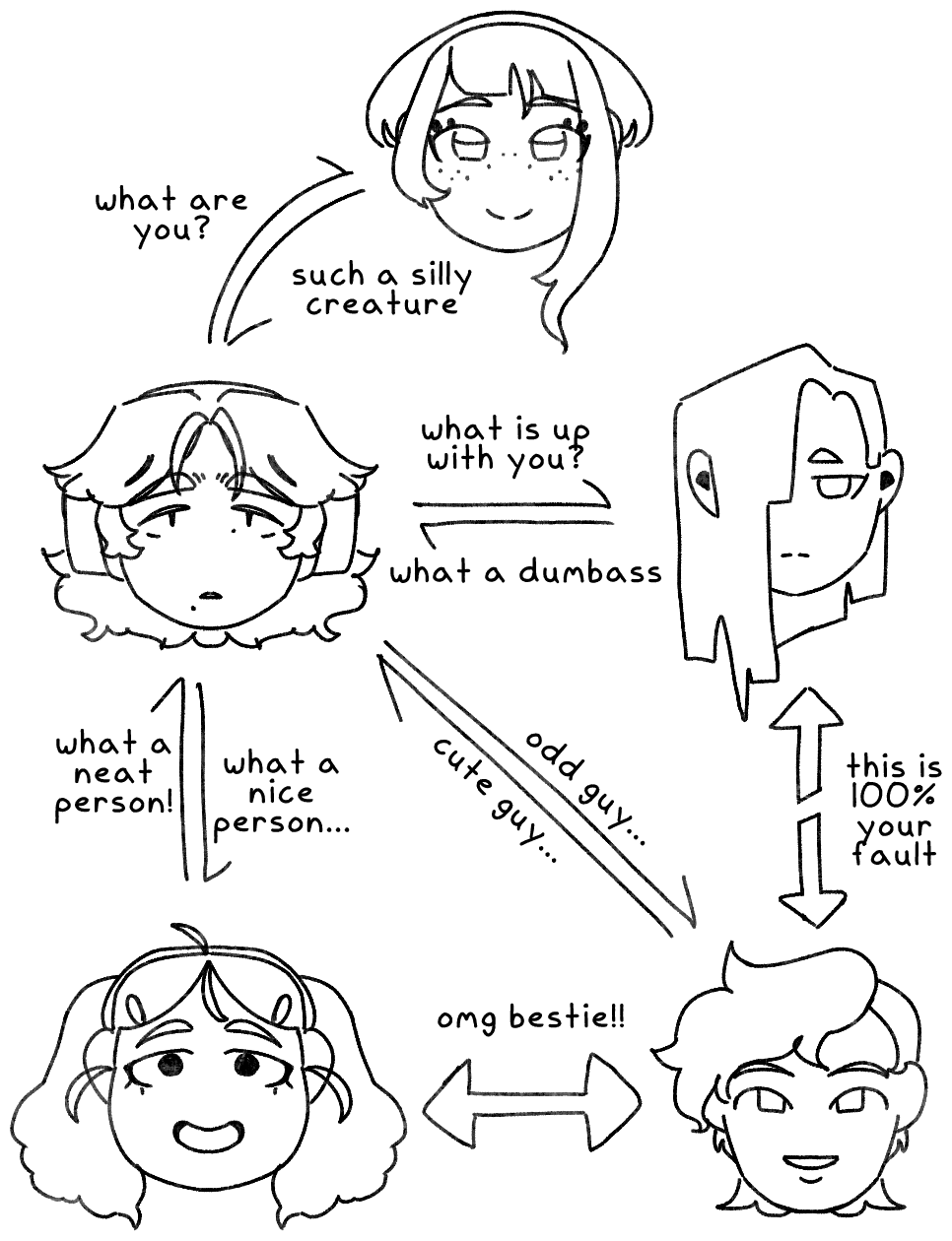 A music composer who gave up on making music. They now focus full-time on completing their degree in computer science. They have a unique way of looking at the world, but often keep their true feelings close to their chest.