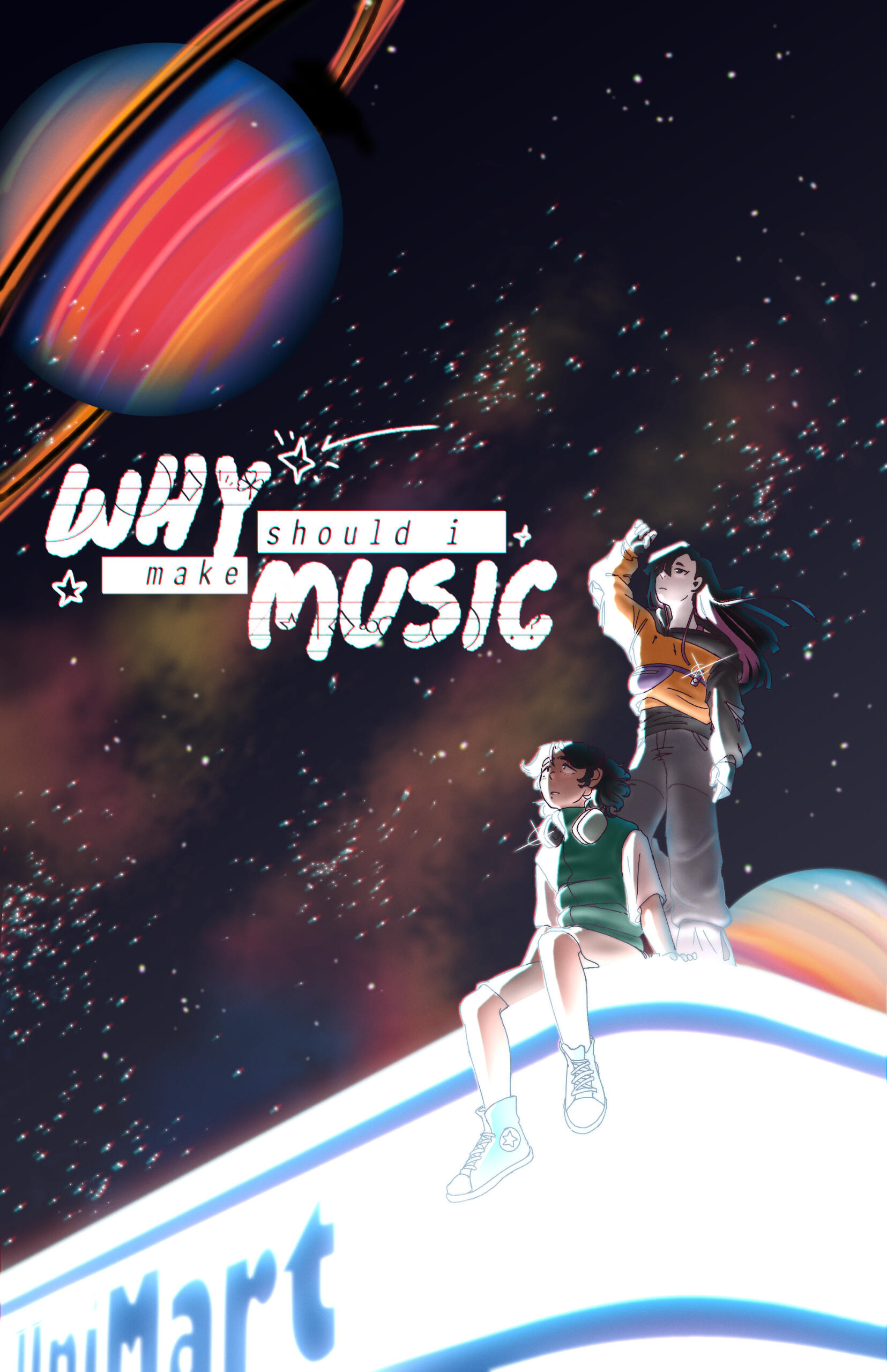 Why Should I Make Music (WSIMM) is a post-modern LGBTQ+ drama about the search for meaning in a satisfaction-driven world. Set around the year 2040, the plot follows Jonah, a college freshman, as he wrestles with his new-found curiosity for music. How can sounds cause people to dream? Does anyone experience music the same way? Does art have meaning? Is AI art really art?And most importantly, why would anyone wish to make music?